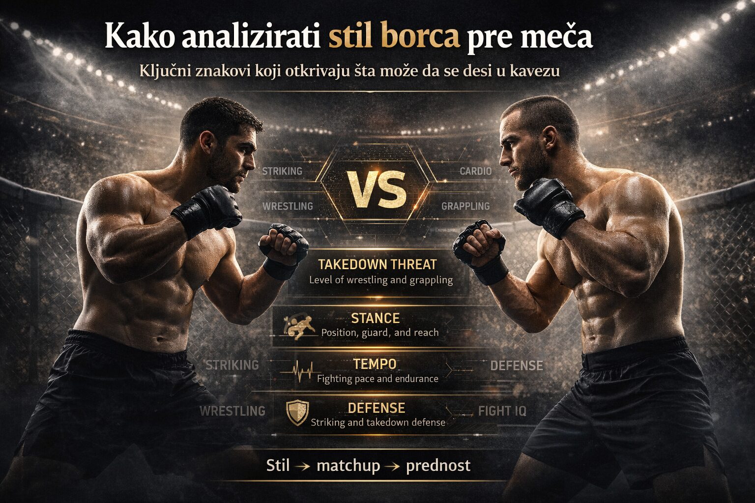 Na kraju, prava analiza MMA borca nije puko nabrajanje tehnika, već čitanje logike borbe. Kada naučiš da posmatraš distancu, tempo, reakciju na pritisak, prilagođavanje i fight IQ, mečevi počinju da izgledaju mnogo jasnije. Tada scouting stilova prestaje da bude površna priča i postaje stvaran alat.